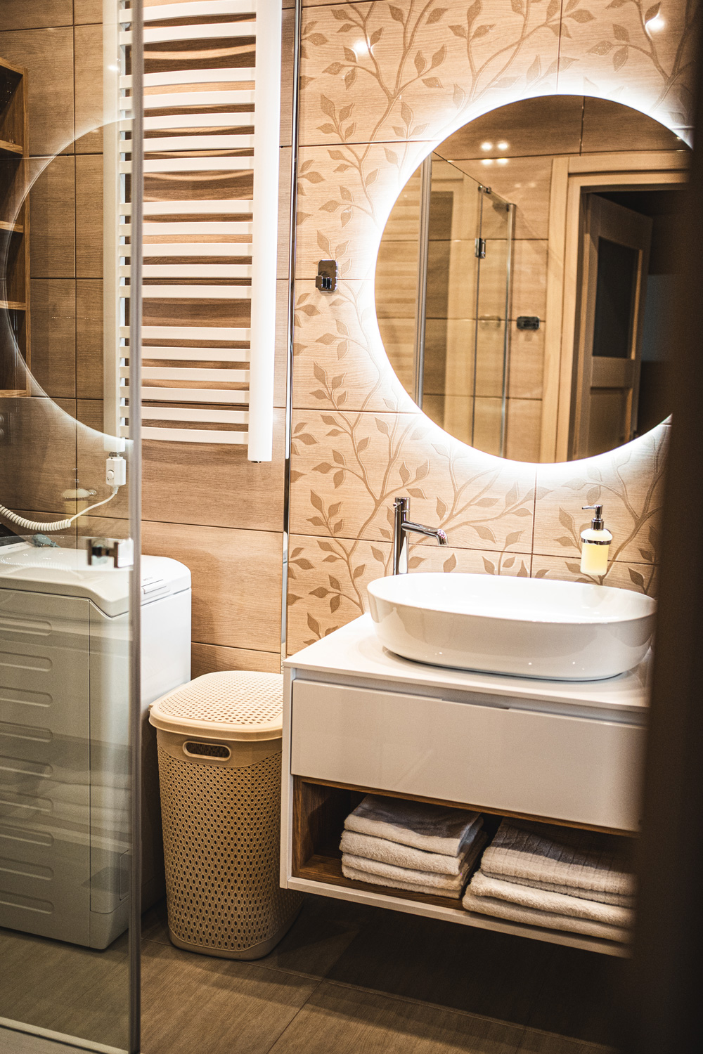 Wnętrze domku emanuje ciepłem, przestronnością i przytulnością, tworząc idealne warunki do relaksu. Choć znajduje się w sąsiedztwie innych domów, zapewnia pełną intymność i spokój, pozwalając odpocząć od zgiełku codzienności.